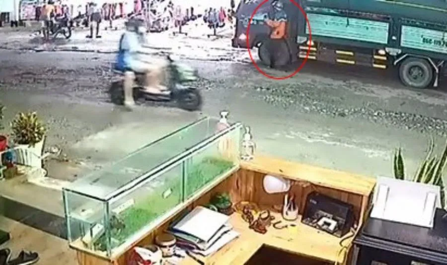 Theo hình ảnh camera ghi lại, thời điểm trên có một người đàn ông đi xe máy chạy đến cửa xe tải nhìn vào bên trong. Sau khi quan sát xung quanh, người này bỏ đi, khoảng 30 giây sau thì quay trở lại nhưng chạy xe máy ngang qua chiếc xe tải.