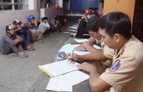 Công an lập biên bản các quái xế vi phạm. Ảnh: VH