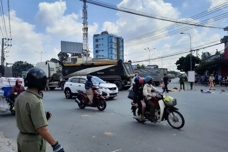 Ngày 5-6, Công an TP Thủ Dầu Một (Bình Dương) đã khám nghiệm hiện trường để điều tra vụ tai nạn giữa một xe ben và xe máy khiến người đàn ông hành nghề xe ôm tử vong, người khách đi xe ôm bị thương nặng.