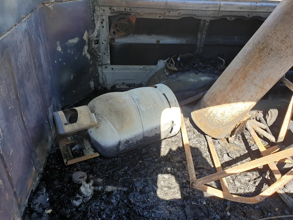 Được biết, trên chiếc xe này còn chở hai bình ga loại 14 kg nhưng may mắn không bị rò rỉ khí ga.