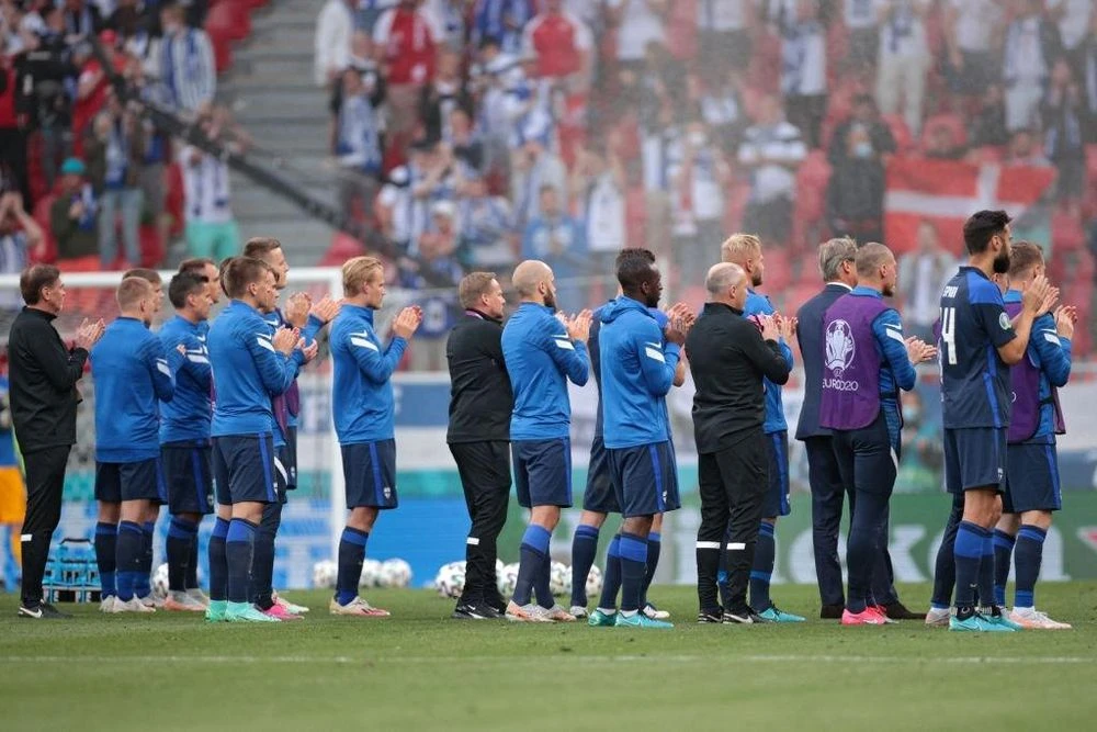 Cầu thủ Phần Lan vỗ tay khen ngợi cả đội Đan Mạch vượt qua nỗi đau và vì tinh thần Fair Play mà trở lại thi đấu