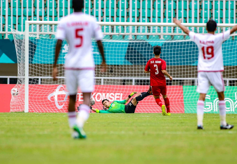 Minh Vương thì bị thủ môn của UAE "bắt bài"