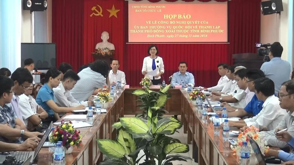 Trong buổi họp báo ngày 27-11, bà Trần Tuyết Minh, Trưởng ban Tuyên giáo Tỉnh ủy Bình Phước, cho biết việc thành lập TP Đồng Xoài tạo tiền đề thúc đẩy sự phát triển kinh tế-xã hội của thị xã Đồng Xoài nói riêng và tỉnh Bình Phước nói chung.