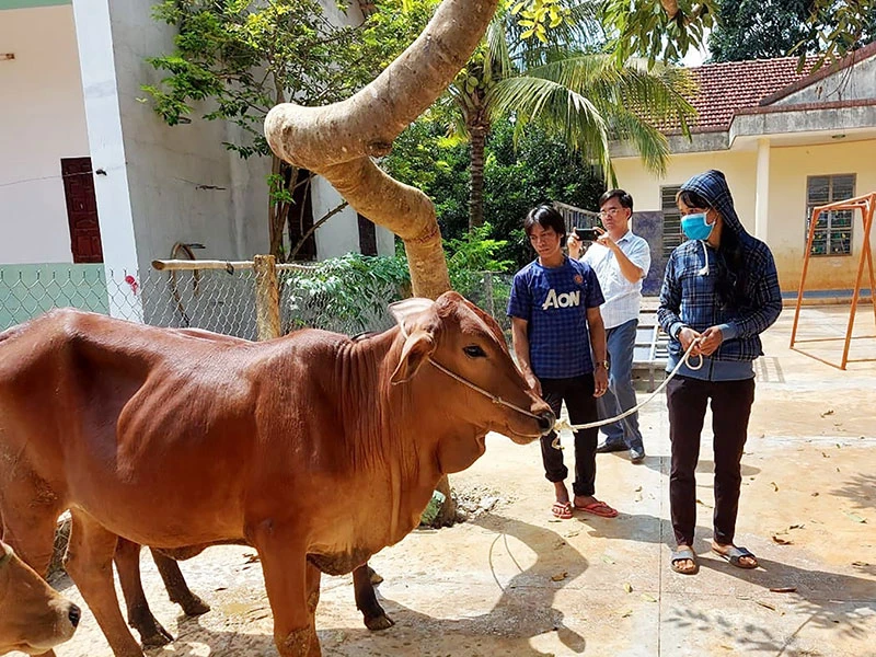 Bà con dân tộc thiểu số huyện Bù Gia Mập nhận bò trong chương trình giảm 1.000 hộ nghèo tại Bình Phước. Ảnh: LÊ ÁNH
