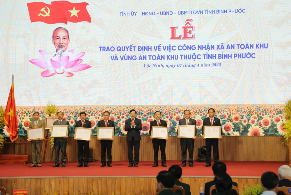 Dịp này, Đảng bộ, chính quyền và nhân dân huyện Lộc Ninh vinh dự được Chủ tịch nước tặng thưởng Huân chương Độc lập hạng Nhì; huyện Lộc Ninh cũng được Thủ tướng Chính phủ công nhận vùng An toàn khu; 6 xã, thị trấn được công nhân xã An toàn khu.