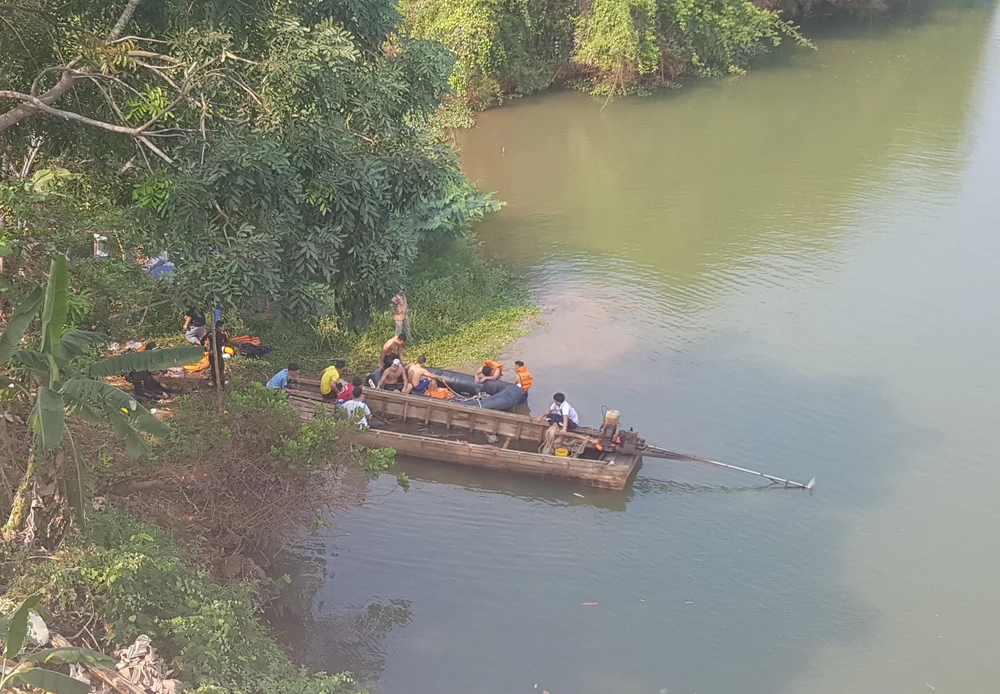 Lực lượng người nhái tìm kiếm người phụ nữ nhảy sông mất tích. Ảnh: KD