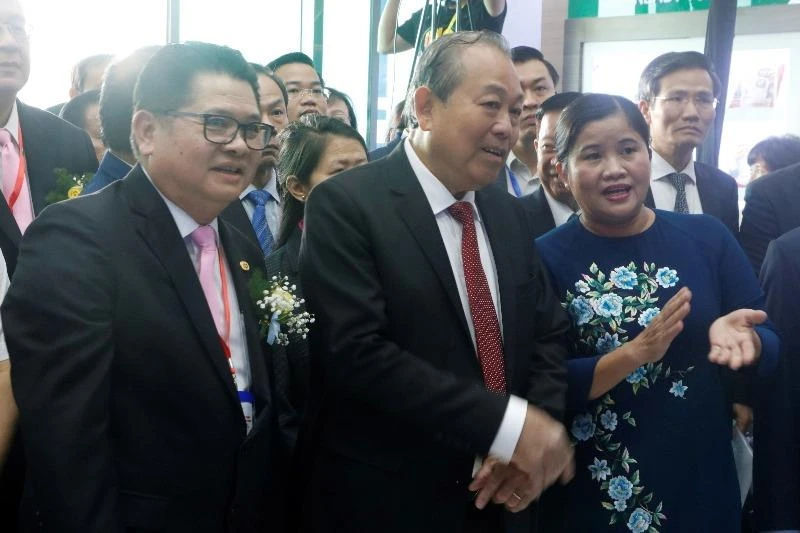 Phó Thủ tướng Trương Hòa Bình (giữa) hy vọng Bình Phước tận dụng những lợi thế, tiềm năng có sẵn phát triển mạnh mẽ trong thời gian tới. Ảnh: LÊ ÁNH