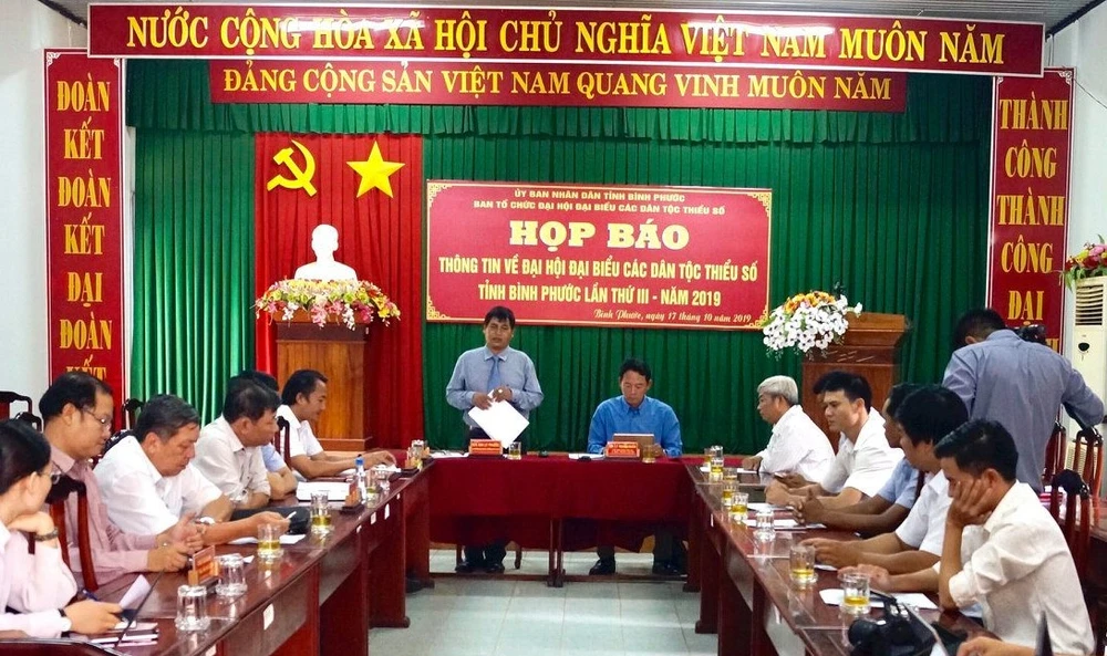 Ngày 17-10, UBND tỉnh Bình Phước tổ chức buổi họp báo thông tin về Đại hội đại biểu các dân tộc thiểu số tỉnh Bình Phước lần thứ III, với chủ đề “Các dân tộc đoàn kết, phát huy nội lực, hội nhập và phát triển”.