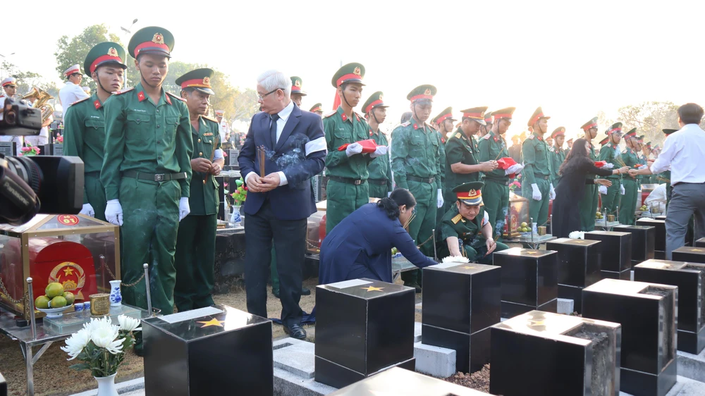 Lãnh đạo tỉnh Bình Phước tổ chức lễ truy điệu, an táng cho 27 liệt sĩ đã hy sinh trong chiến tranh. Ảnh: KD
