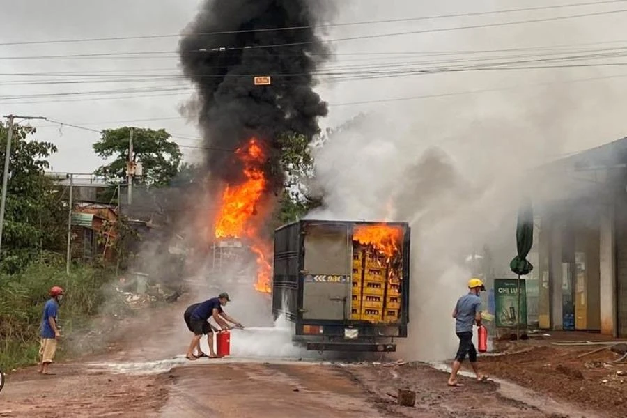Một chiếc xe tải chở nước ngọt bị lửa văng trúng, nên cũng bốc cháy. Người dân gần đó đã dùng mọi cách để dập lửa nhưng cũng bất thành.