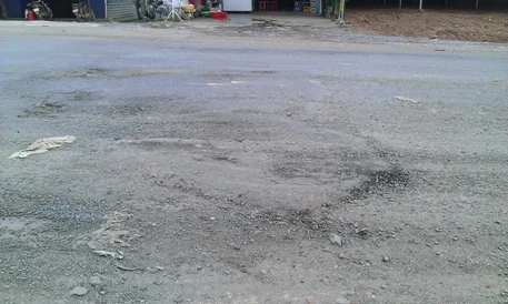 đường Sao Bộng - Đăng hà chưa hoàn thành nhưng đã hư hỏng, xuống cấp. Ảnh: Báo Thanh Tra