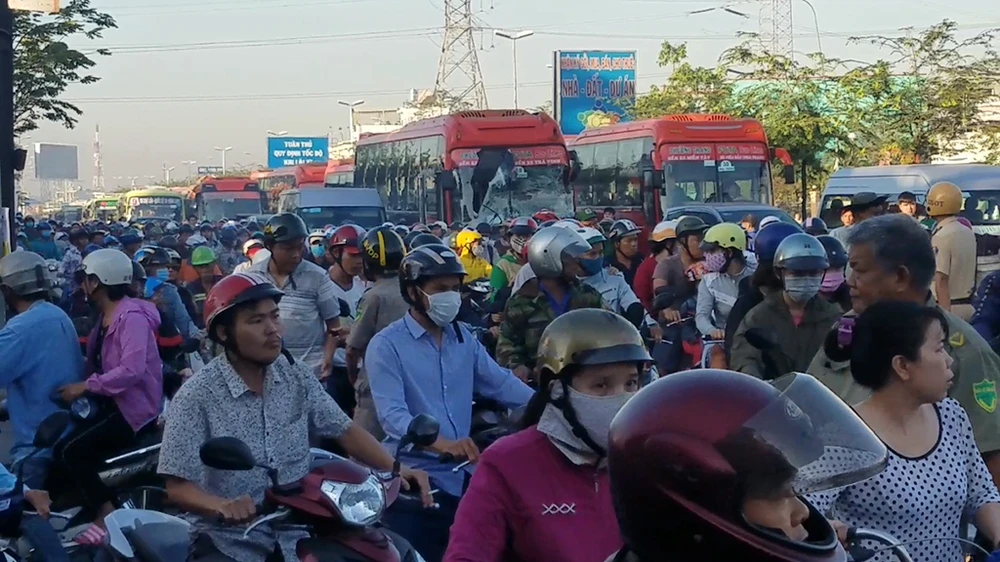 Vụ tai nạn khiến giao thông qua khu vực ùn tắc, kẹt xe nghiêm trọng. Lực lượng chức năng đã có mặt điều tiết, phân luồng giao thông.