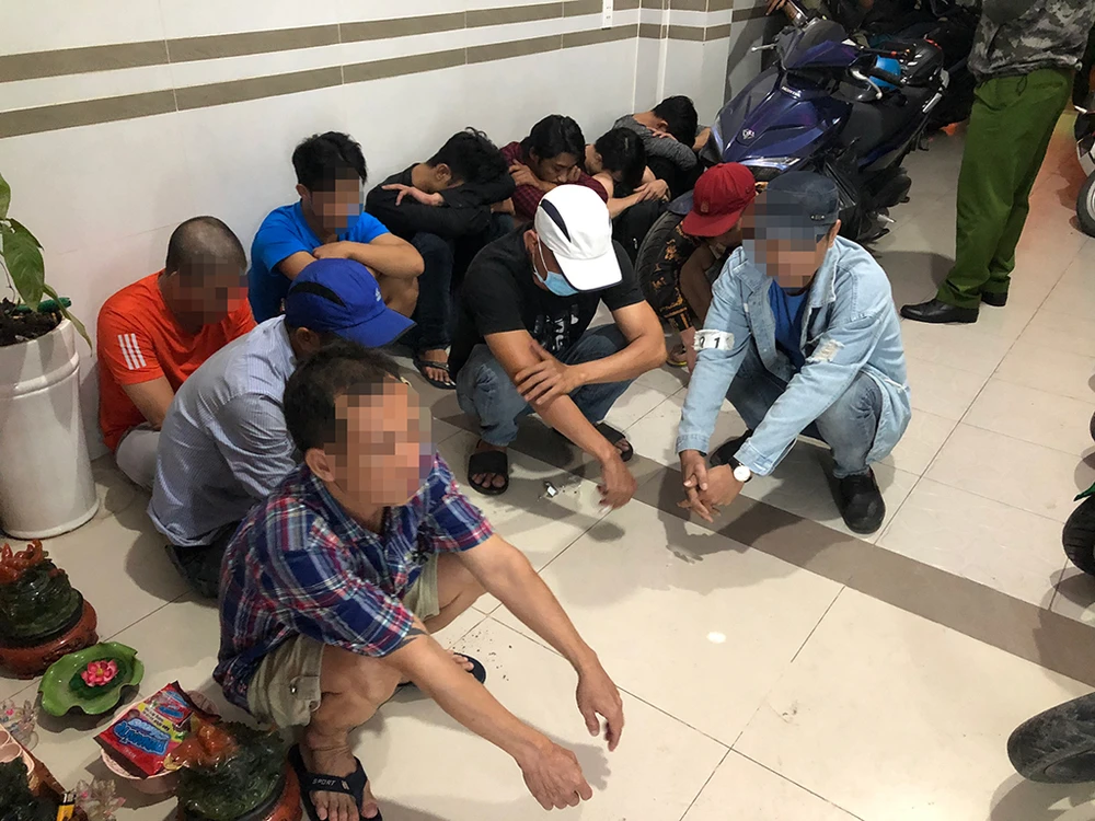 Trong các phòng, 12 nam nữ thanh niên biểu hiện không tỉnh táo bị công an đưa về trụ sở để sàng lọc, kiểm tra.
