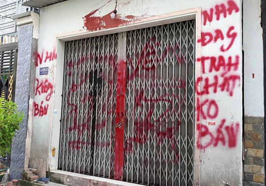 Nhà cô H. bị tạt sơn, khóa trái cửa trước đó.
