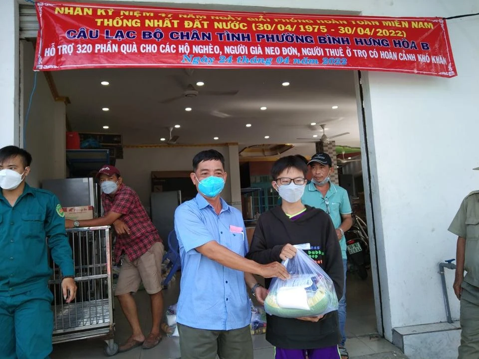Nhân kỷ niệm 47 năm ngày giải phóng hoàn toàn miền Nam thống nhất đất nước (30-4-1975 - 30-4-2022), câu lạc bộ Chân tình trao 320 phần quà cho các hộ nghèo, người già neo đơn, người thuê trọ có hoàn cảnh khó khăn".