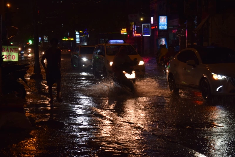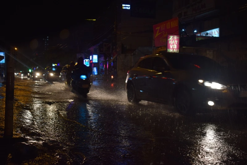 Cơn mưa nhỏ tối 10-6 cũng đủ khiến một đoạn đường dài hóa sông