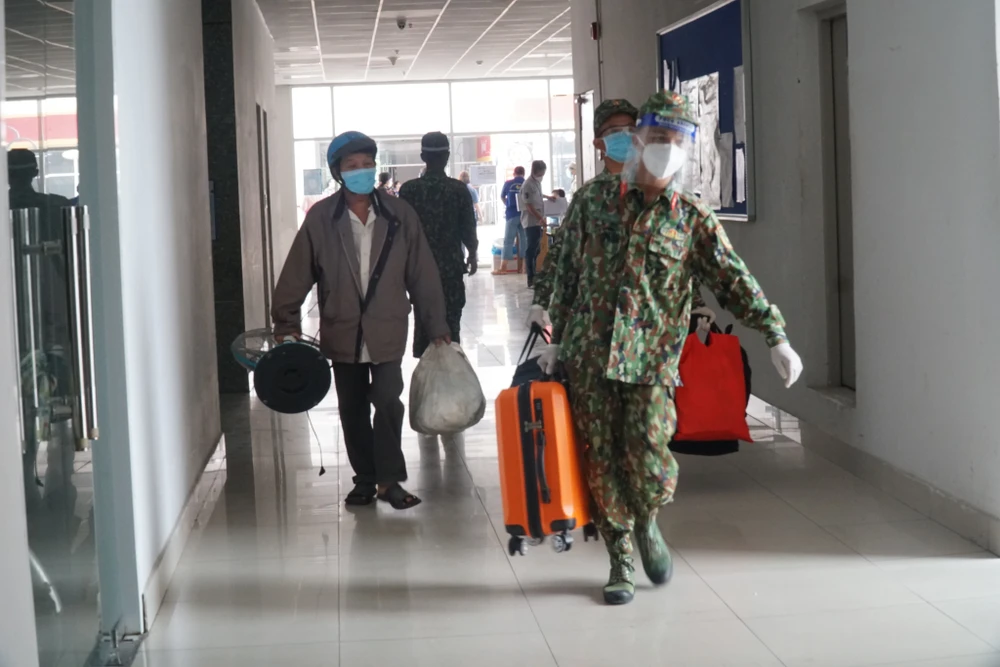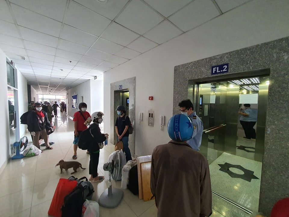 Người dân từ các khu nhà trọ được di chuyển đến chung cư 1050, quận Bình Thạnh. Ảnh: TS