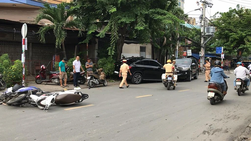 Khoảng 8 giờ 30 sáng 5-8, ô tô hiệu Mercedes, biển số 51H-112... chạy trên đường Ung Văn Khiêm (phường 25, quận Bình Thạnh), khi tới điểm giao với đường Nguyễn Văn Thương, chiếc xe này bất ngờ mất lái, lao với tốc độ cao tông trúng bốn xe máy và một ô tô 61LD-005... đậu bên đường.