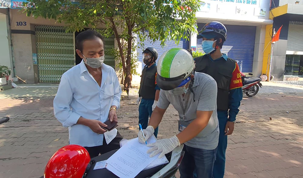 Ngày 16-8, tổ công tác của UBND phường 15, quận Bình Thạnh, TP.HCM tuần tra khu vực để xử lý với các trường hợp ra đường không thực sự cần thiết.