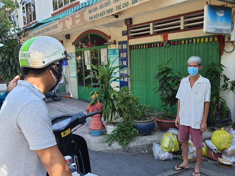 Ông H. đi đổ rác rồi ghé mua thuốc bị tổ công tác lập biên bản. Ảnh: HT