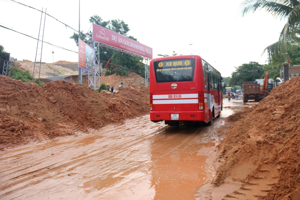 Đây là lần thứ hai chỉ trong vòng ba ngày, lượng cát đỏ khổng lồ từ dự án bất động sản này đổ xuống đường.