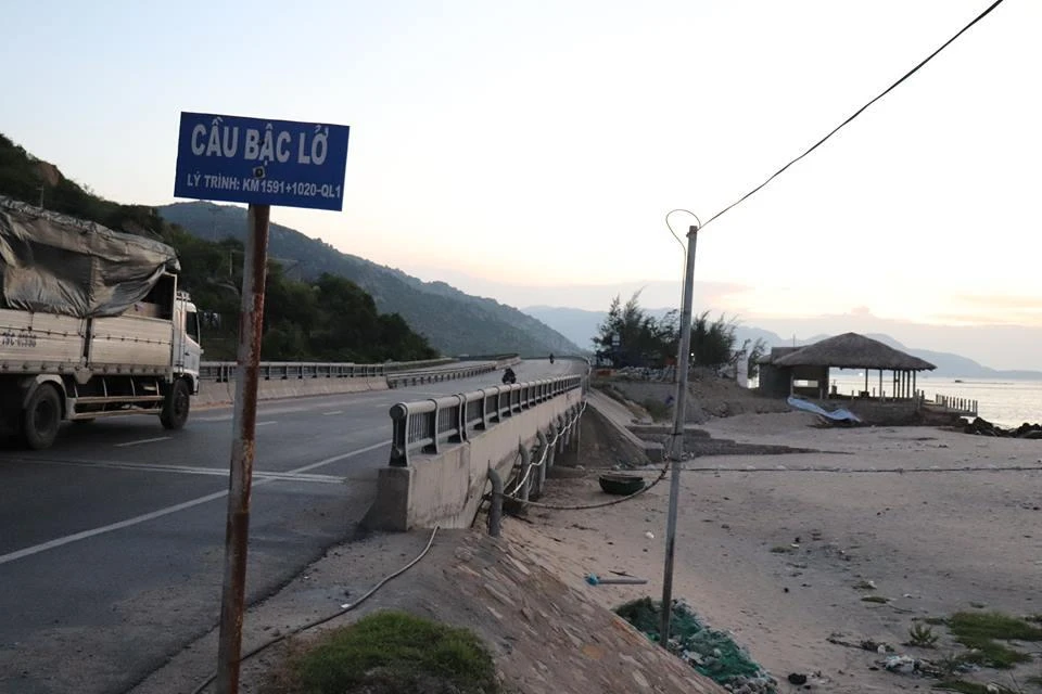 Không những lấn biển, chủ đầu tư còn san lấp sát chân cầu Bậc Lở trên QL1, tháo cả hộ lan bảo vệ đường bộ để cho ô tô ra vào dẫn tới nguy cơ đe dọa cầu đường, gây mất an toàn giao thông tại khu vực này.