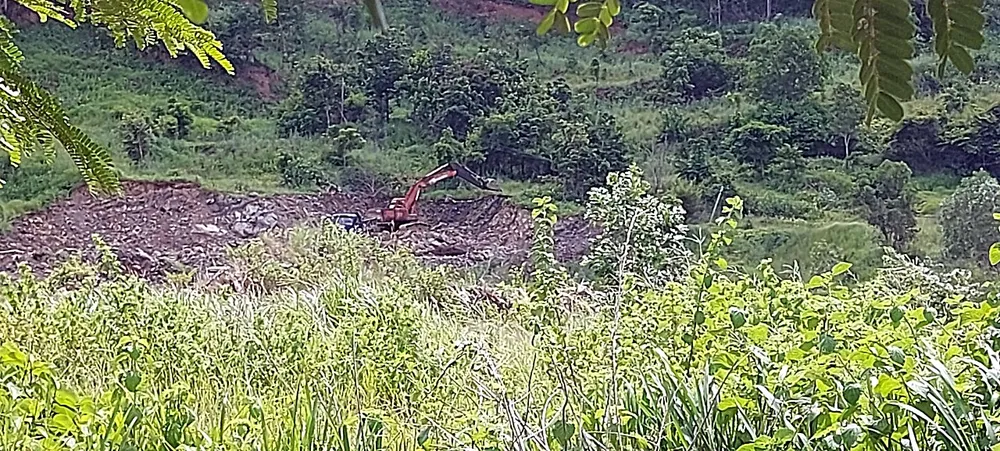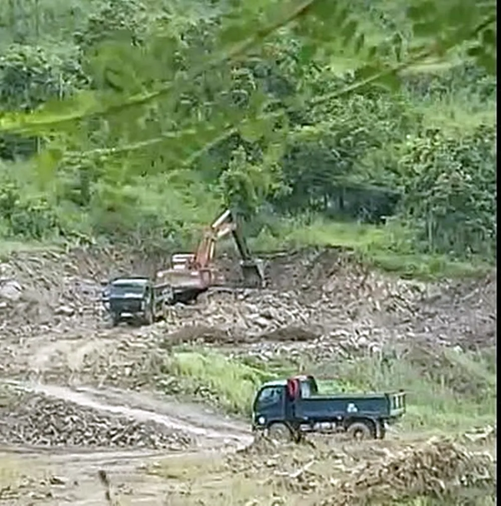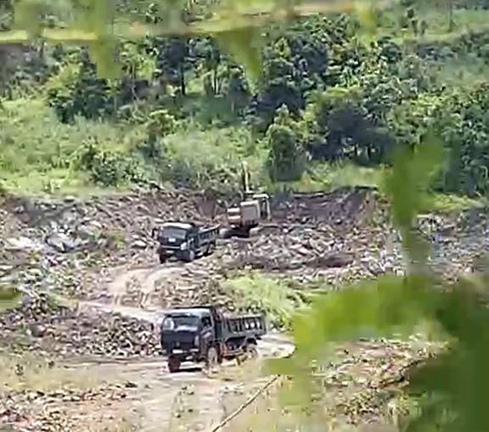 Ngày 24-7, trong vai những người đi đào cây cảnh, chúng tôi tiếp cận khu vực này chỉ cách quốc lộ 1A chỉ xấp xỉ 1 km. Từ khá xa đã nghe rất rõ tiếng xe cơ giới gầm rú. Một chiếc xe máy xúc bánh xích loại lớn đang cắm chiếc gàu to đùng vào sườn đồi múc đổ lên đoàn xe ben đang xếp hàng vận chuyển khoáng sản ra bên ngoài.