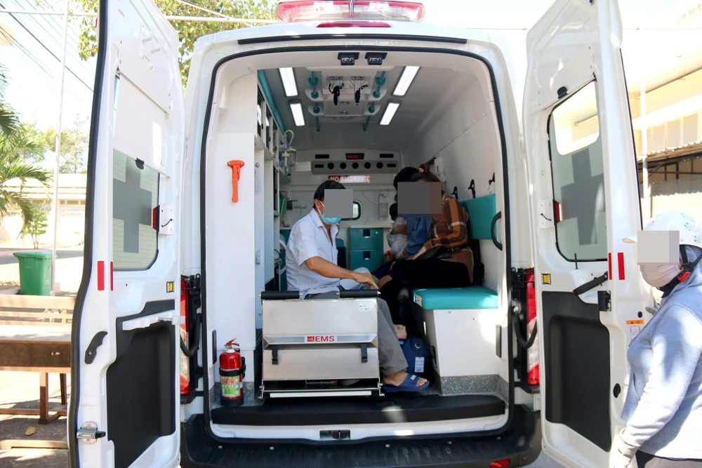 Xe cứu thương đưa cách ly một số trường hợp lấy mẫu xét nghiệm.