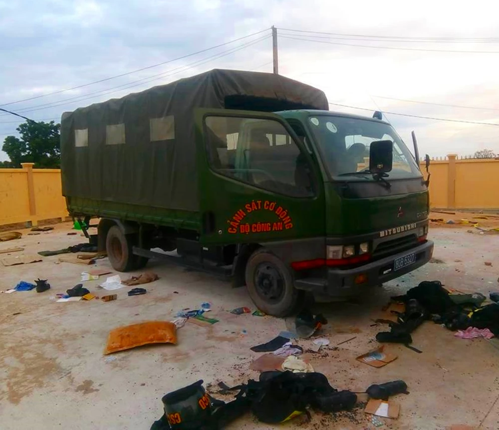Xe của lực lượng CSCĐ Bộ Công an vẫn còn đậu tại đây