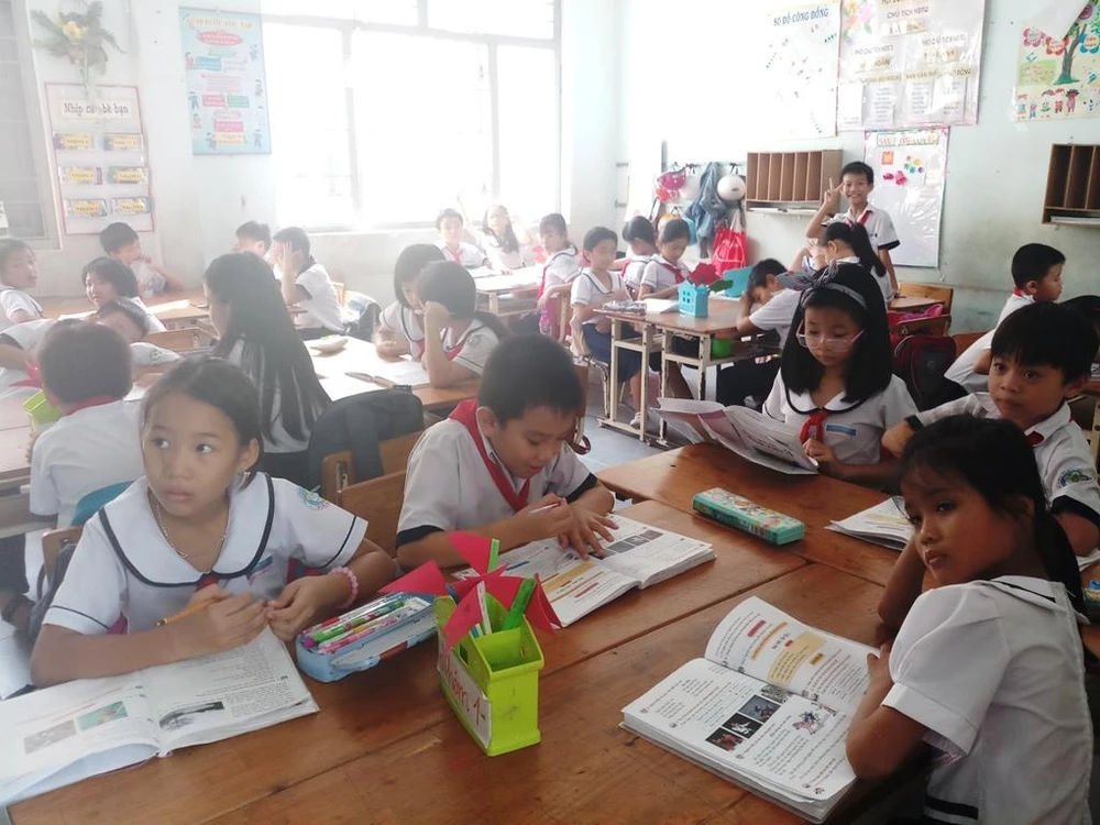 Trường tiểu học Tân An 2, Hàm Tân, Bình Thuận là một điển hình trong việc thực hiện mô hình VNEN. Trong ảnh là học sinh của trường trong một tiết học. Ảnh: NGUYỄN QUYÊN