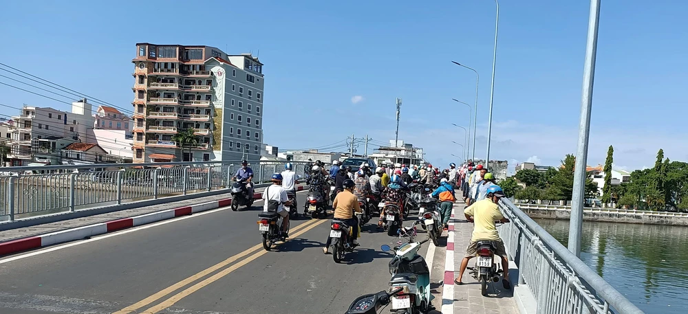 Người dân hiếu kỳ tập trung ở cầu Dục Thanh xem tìm kiếm