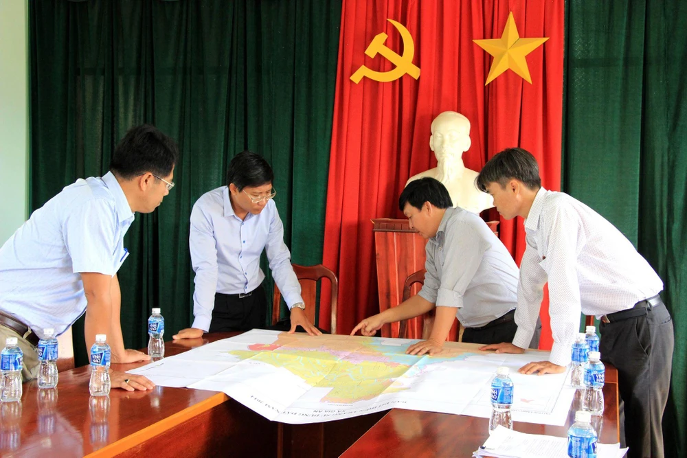 Ông Lê Tuấn Phong (thứ 2 từ trái qua) đang kiểm tra, chỉ đạo