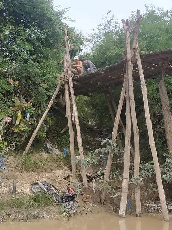 Theo người dân địa phương, chiếc cầu gỗ này dài khoảng 20 m, rộng 1,5 m, do người dân tự làm đã rất cũ kỹ, gập ghềnh, trụ cầu cũng làm bằng gỗ đã mục nát và mỗi ngày có hàng trăm lượt người dân di chuyển qua.