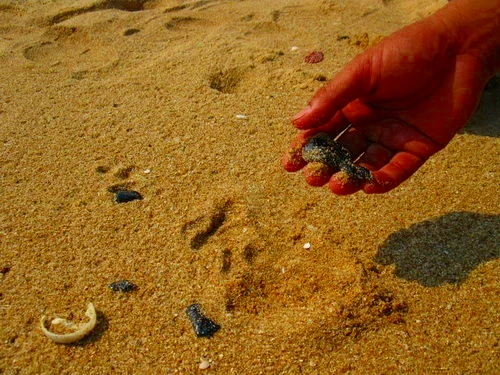 Dầu vón cục trôi vào bờ biển Bình Thuận năm 2010. Ảnh: PN