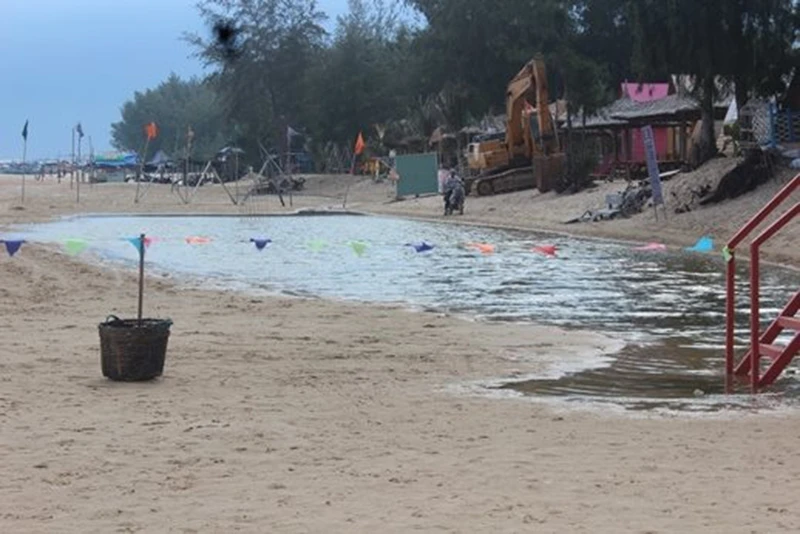 Như đã đưa, năm nào cũng vậy, khu du lịch Coco Beachcamp (Tân Phước, La Gi) cũng bị triều cường tạo ra một đoạn xói lở dài đọng nước trước bãi biển khu du lịch. Thấy rác rến, phân bò gây mất vệ sinh quá phản cảm và nguy hiểm cho du khách nên hàng năm chủ khu du lịch đều thuê xe múc cào cát tại chỗ, san lấp làm vệ sinh.