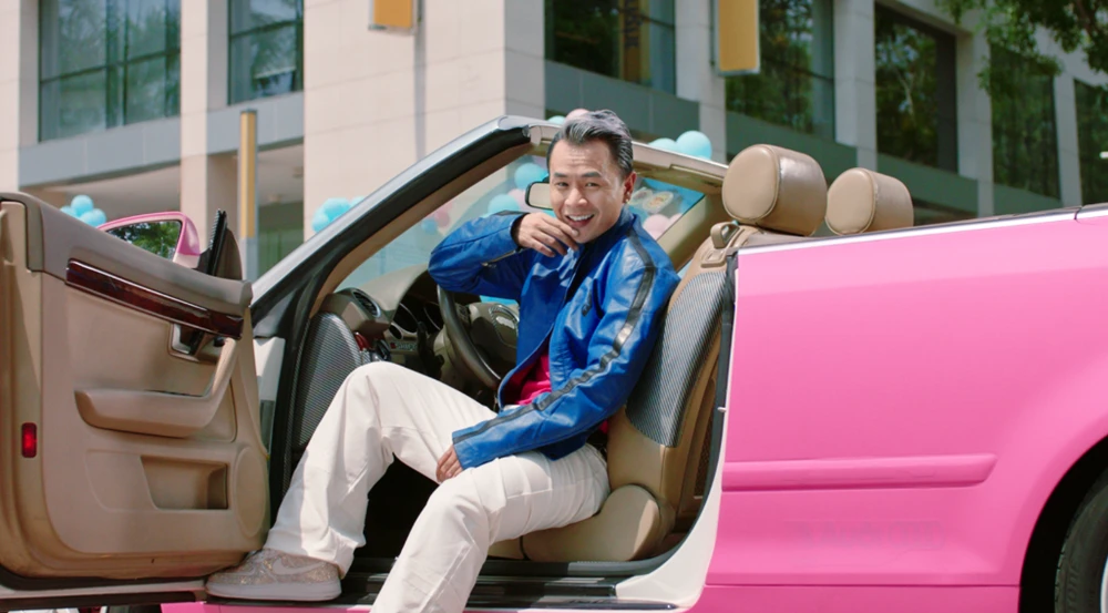 Điều đặc biệt, dù xuất hiện trong sản phẩm với màu hồng chủ đạo, từ màu áo,xe…nhưng rapper vẫn toát lên vẻ nam tính nhờ phong cách và trang phục mạnh mẽ, thời thượng.