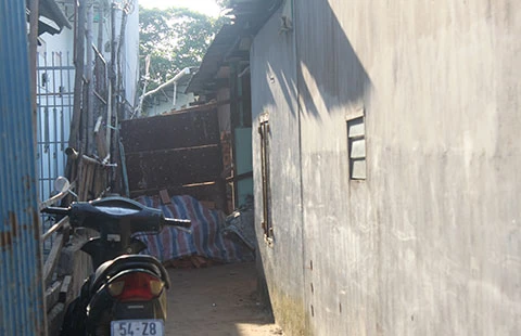 Lối đi chung đang bị chủ đất xây kín khiến gia đình bà Hai gặp khó khăn khi đi lại. Ảnh: CẨM TÚ