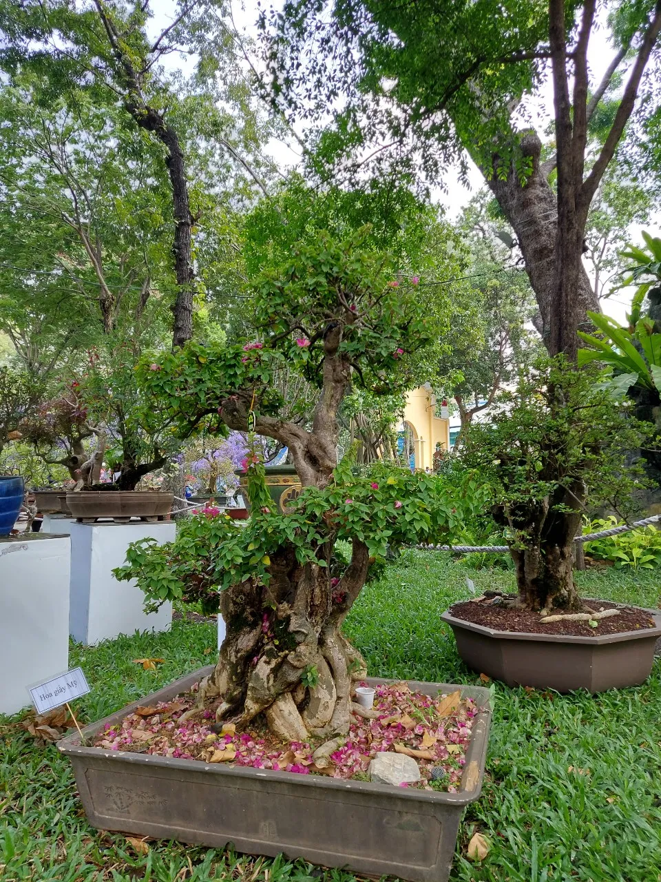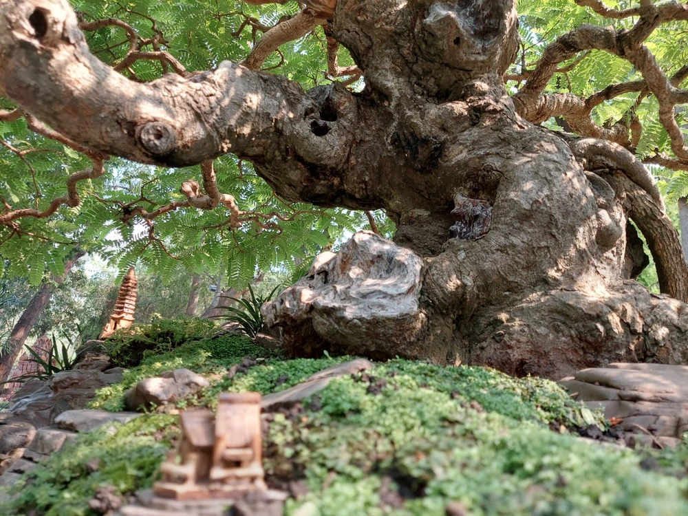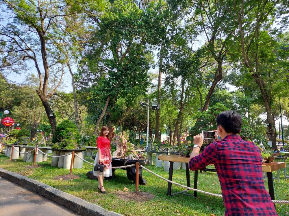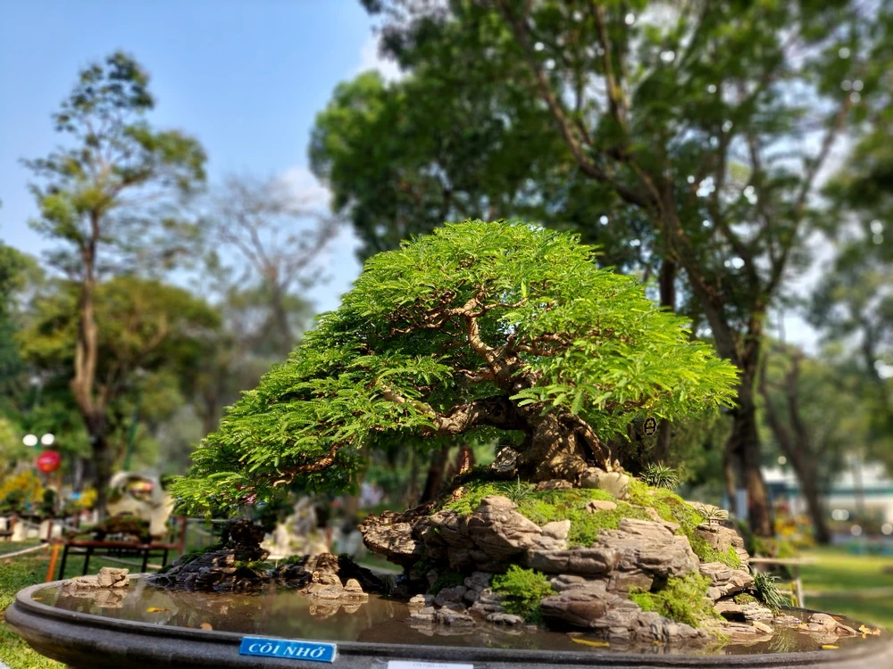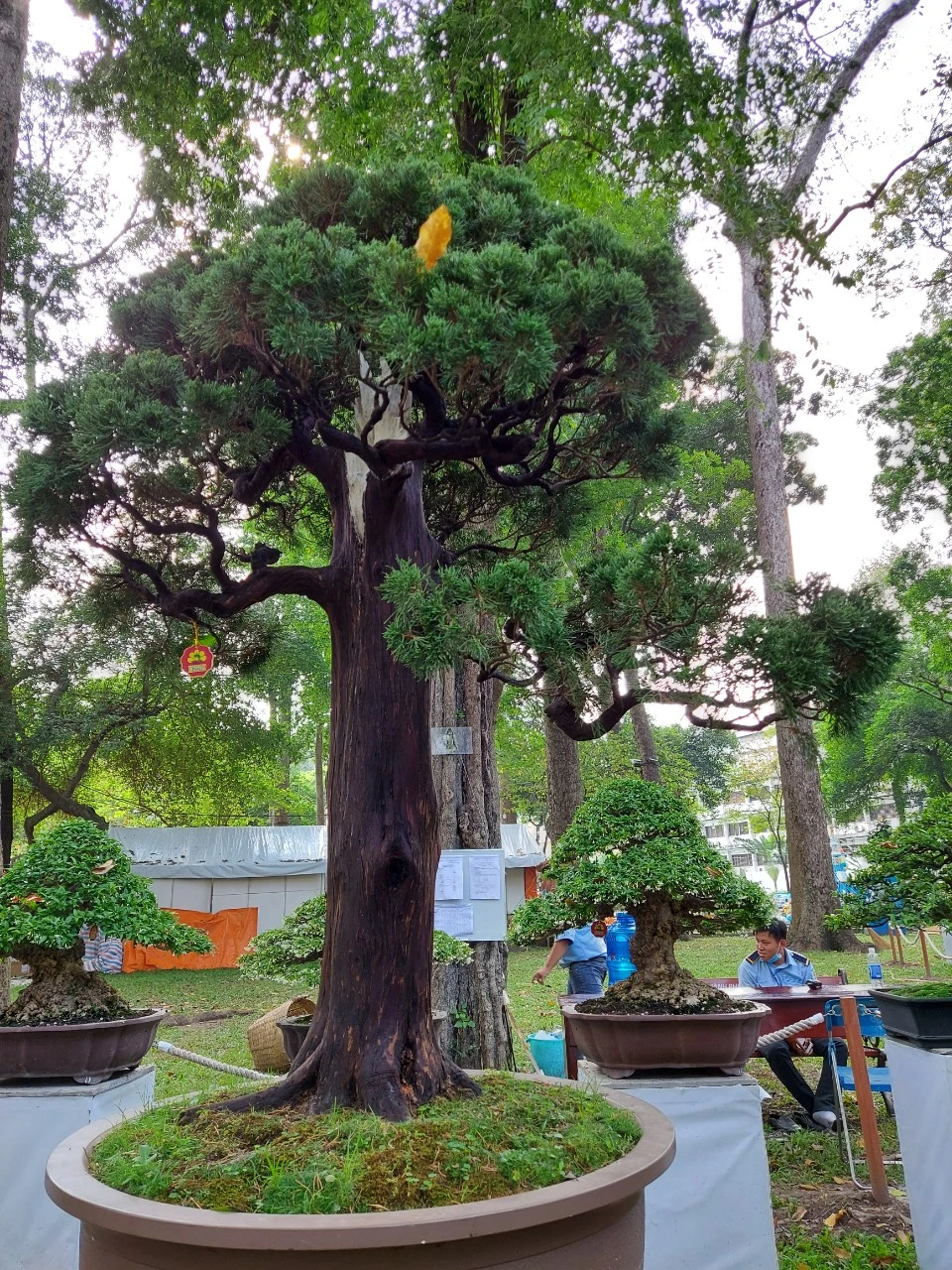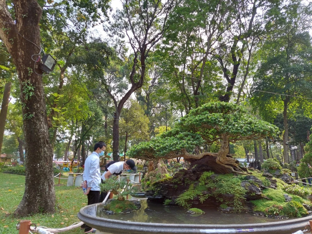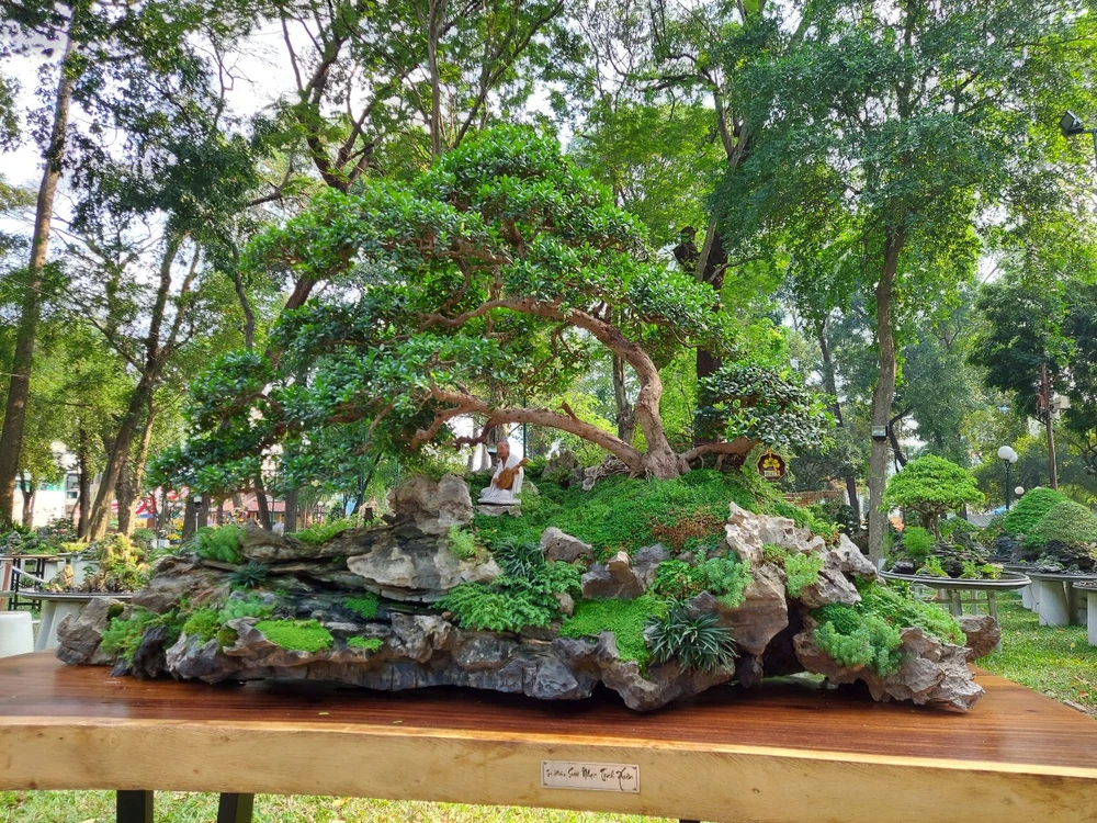 Hội hoa xuân Tao Đàn 2021 không chỉ là nơi trưng bày của nhiều cây cảnh cổ thụ có tuổi đời cả trăm năm mà còn có những cây bonsai dáng siêu độc lạ.