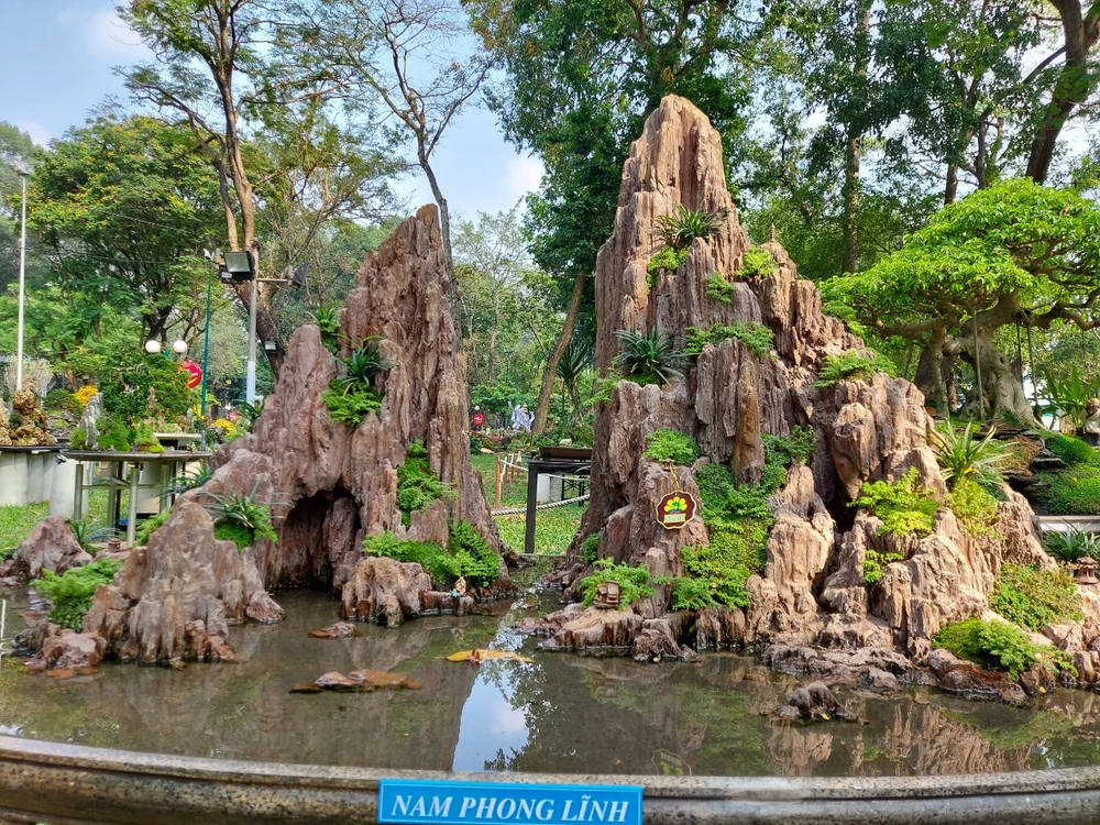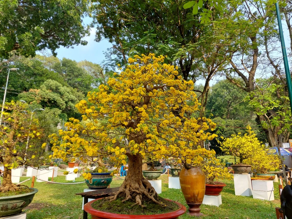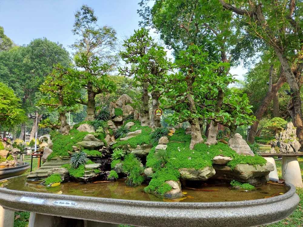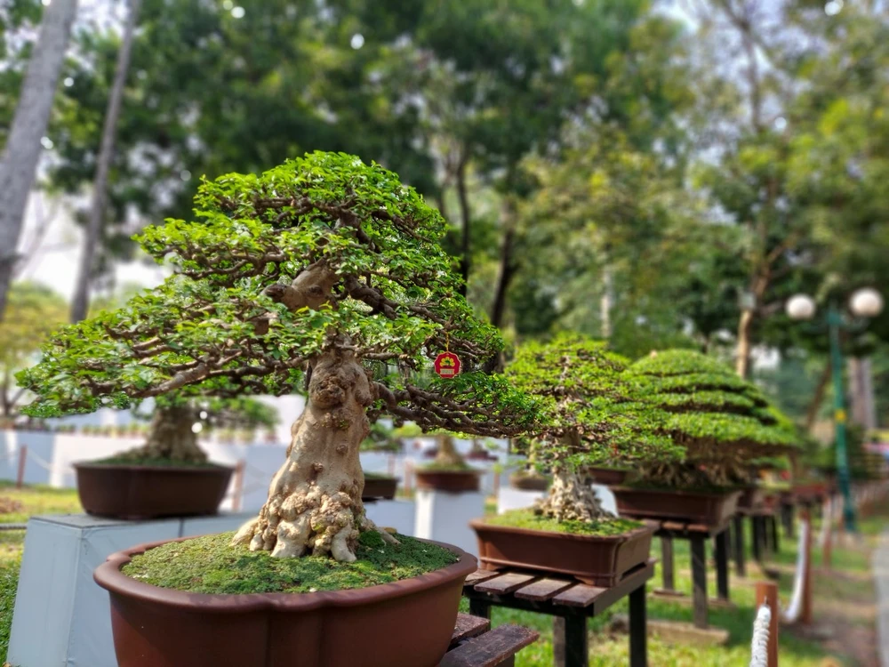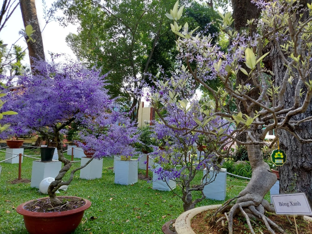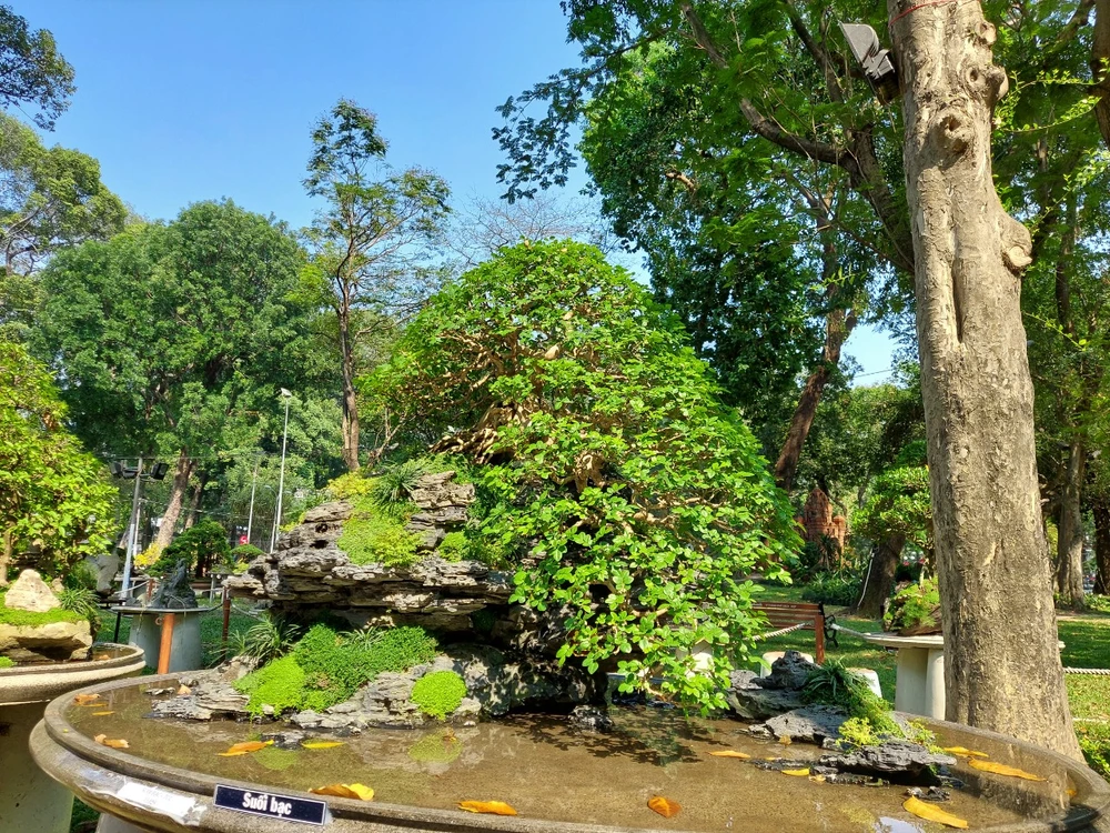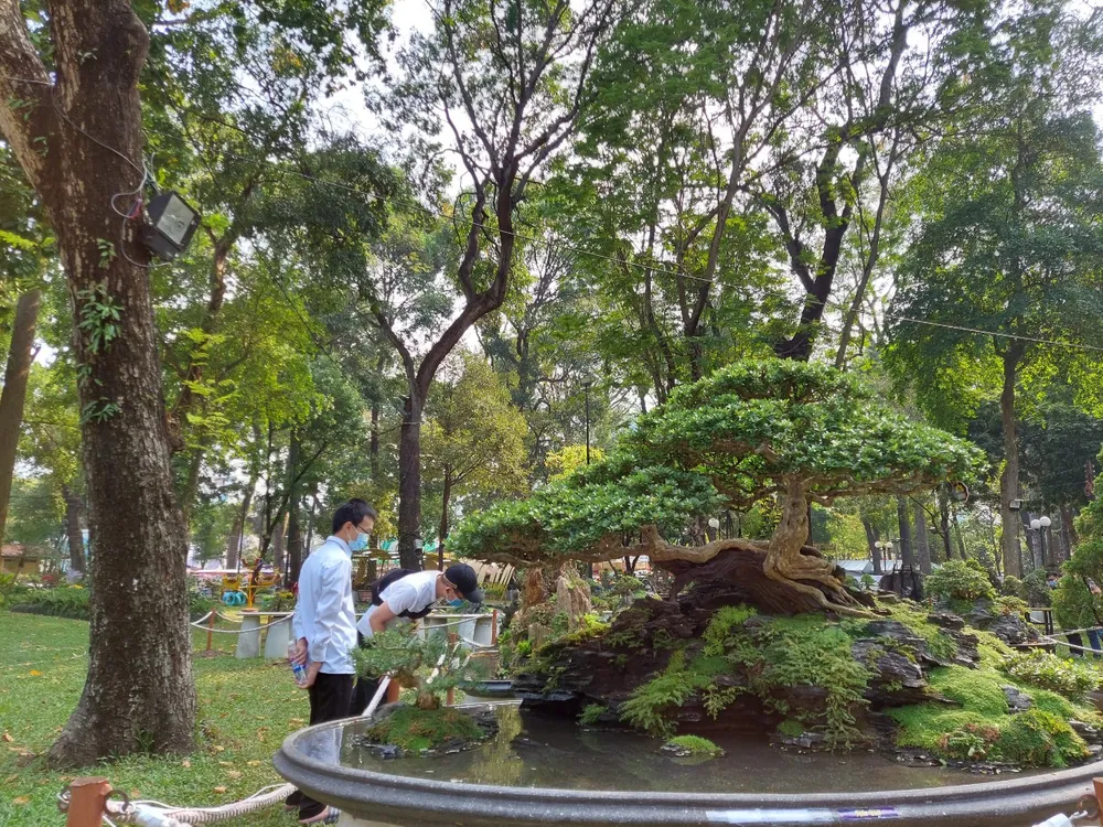 Những cây kiểng độc lạ đang được trưng bày tại công viên Tao Đàn.