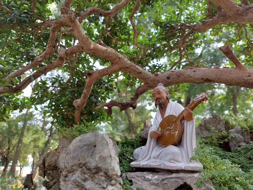 Tiên ông đánh đàn dưới tàng cây râm mát khiến người xem có cảm giác thư thái bình yên. Ảnh: NGUYỄN TRÀ