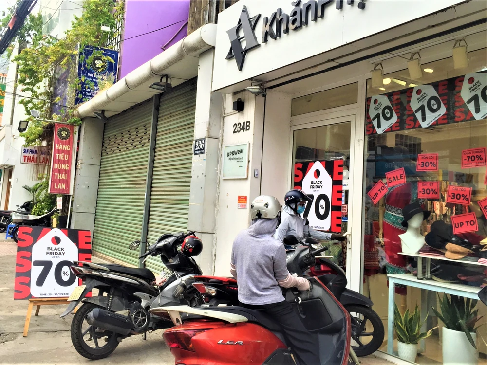 Ghi nhận tại các con đường kinh doanh quần áo thời trang, giày dép, va ly ở quận 3, quận Gò Vấp, Tân Bình...cho thấy đa số đều trưng quảng cáo khuyến mãi rất hấp dẫn với nhiều hình thức giảm giá 10-90%; mua ba tặng một, đồng giá.