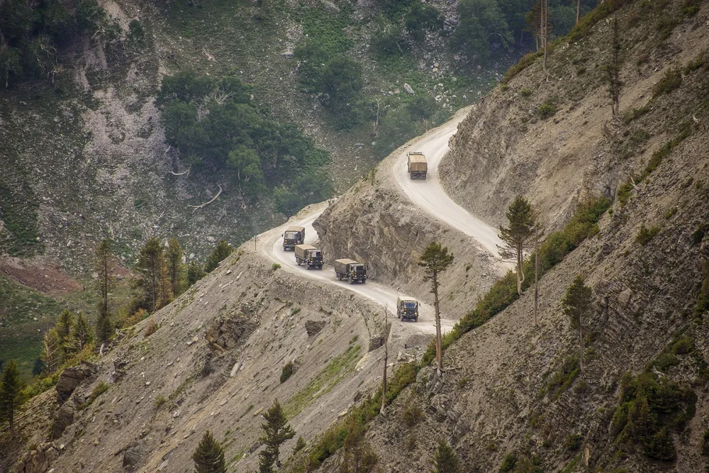 Một đoàn xe của quân đội Ấn Độ tại khu vực tranh chấp Ladakh hồi giữa tháng 6. Ảnh: GETTY