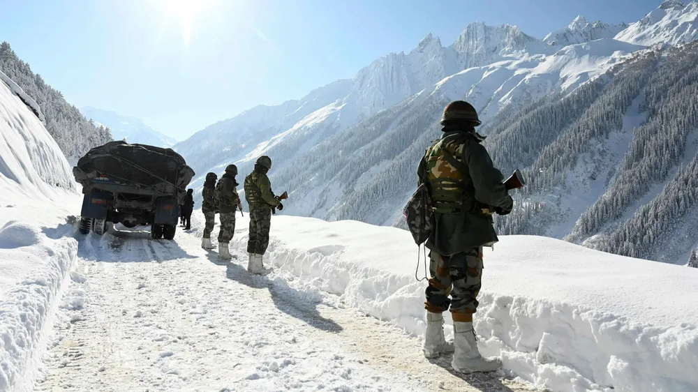 Binh sĩ Ấn Độ giáp sát một con đường trong khu vực tranh chấp Ladakh hồi tháng 2. Ảnh: AFP