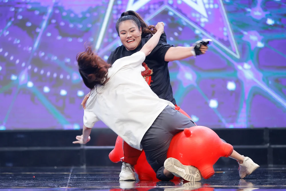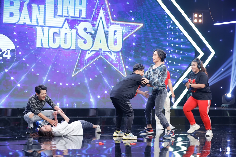 Kim Nhã cố tình gây trở ngại cho đội "Thành người" liền bị Phi Nguyễn quật ngã.