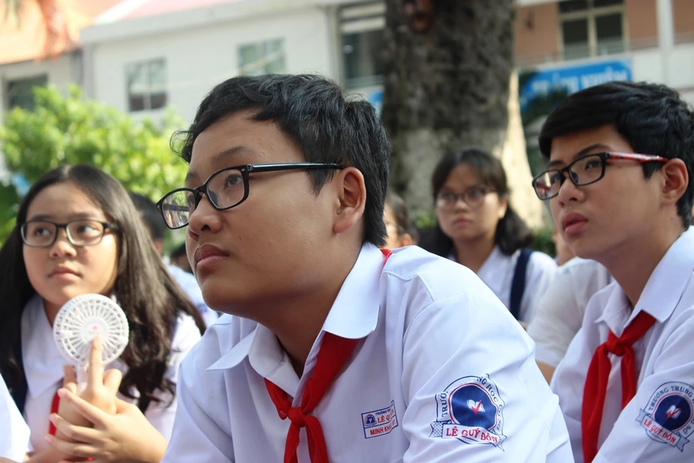 Các em học sinh chăm chú lắng nghe chia sẻ từ khách mời. Ảnh: HL