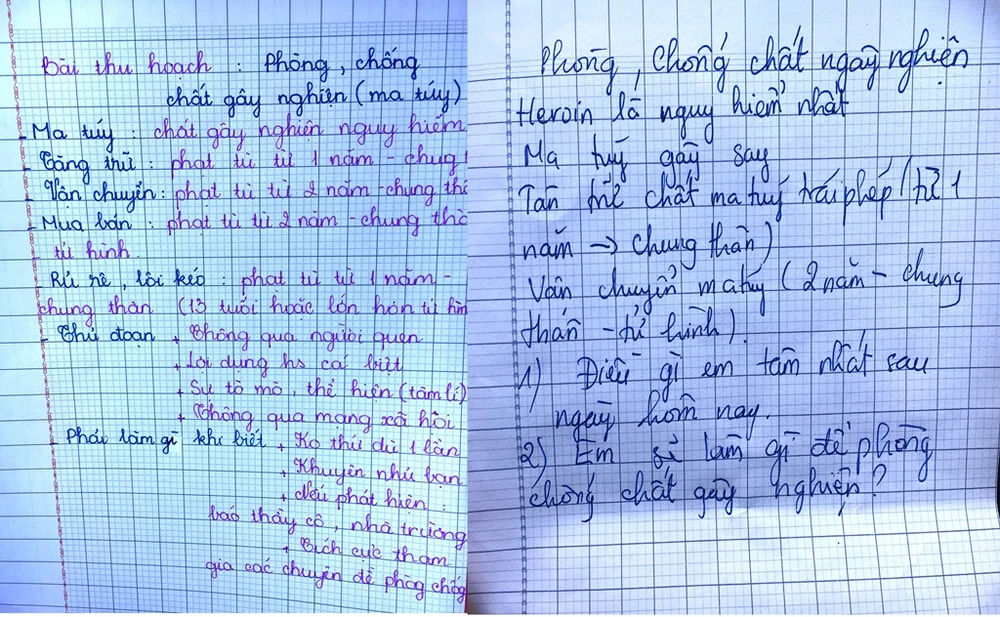 Ngoài ra, các em học sinh cũng được cung cấp thêm kiến thức về các hình phạt của pháp luật dành cho những người mua bán, tàng trữ, sử dụng chất gây nghiện cũng như các tình huống cụ thể để giúp các em có những kỹ năng phòng tránh được các chất gây nghiện.