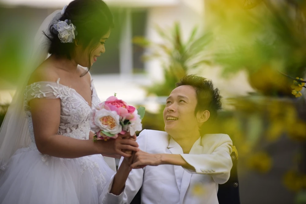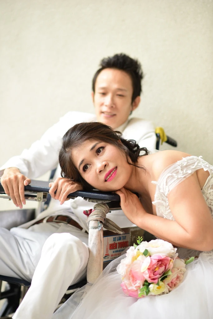 Mong ước lớn nhất của anh Thành là tổ chức được một đám cưới nho nhỏ để chị Nga đỡ tủi thân. Nhóm bạn trẻ Quân light-writer Atelier đã dành tặng anh chị một bộ ảnh cưới. Chúng tôi xin giới thiệu bộ ảnh cưới này đến bạn đọc: