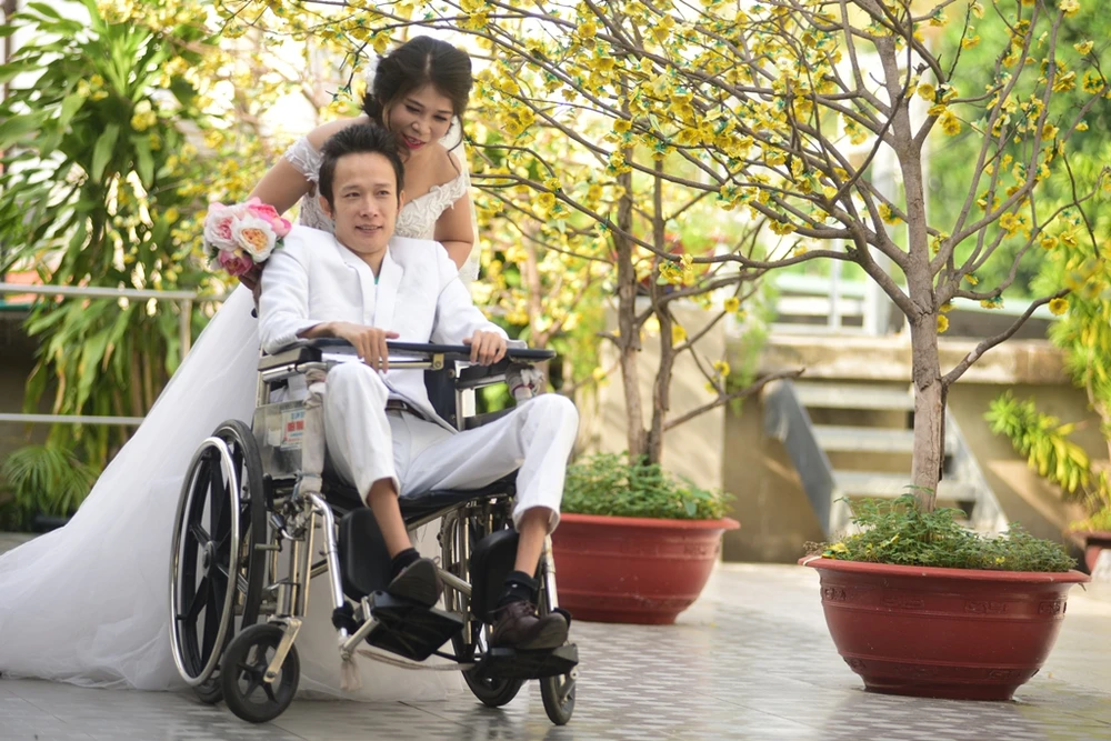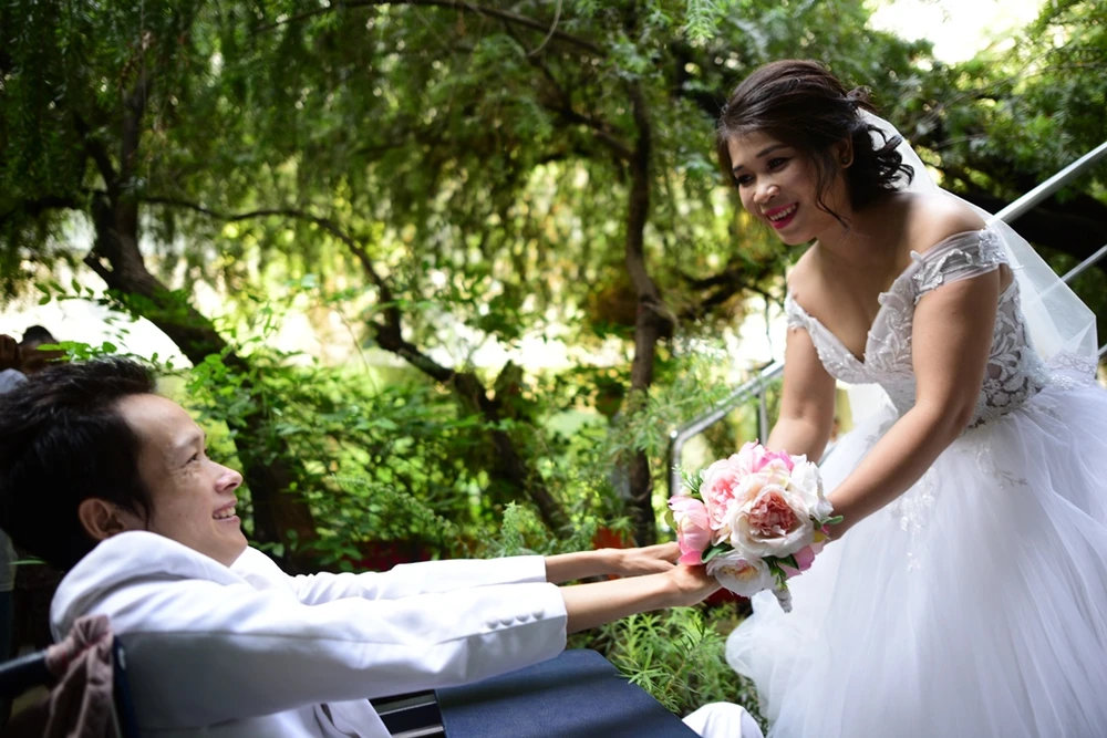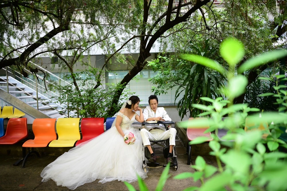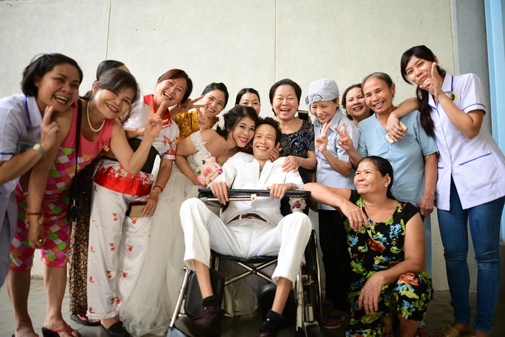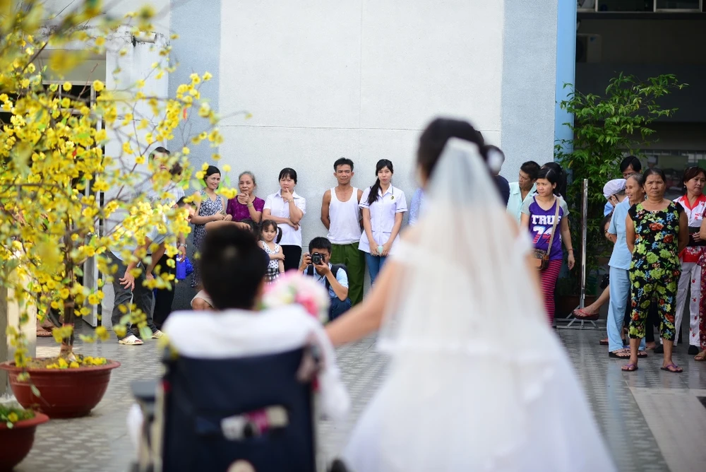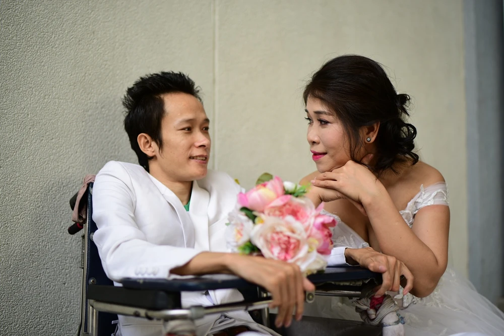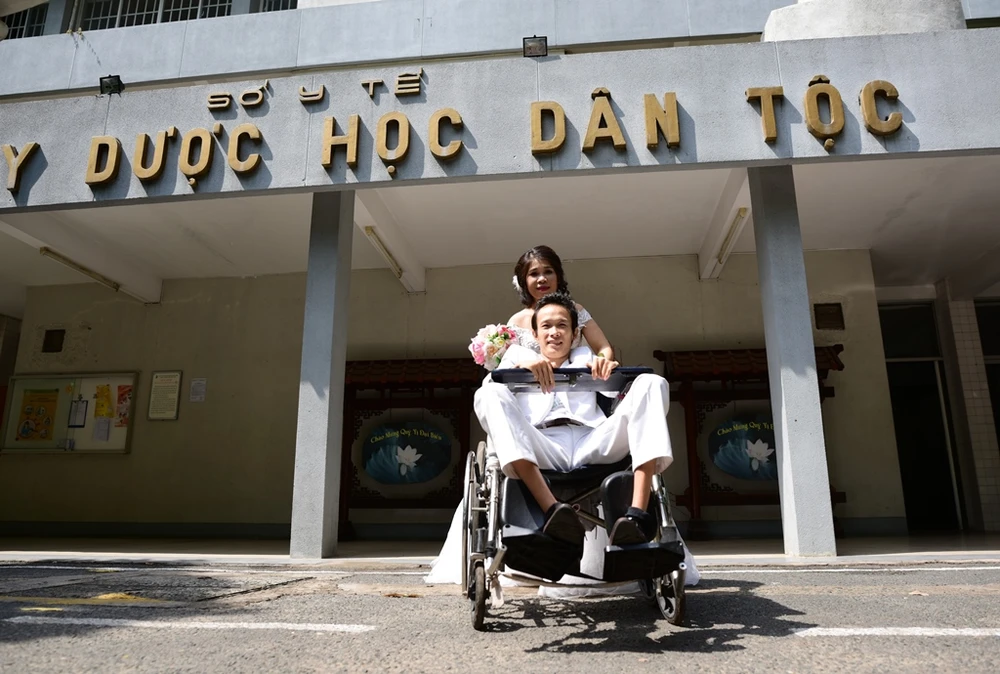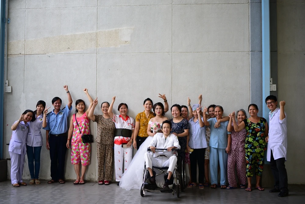 Buổi chụp ảnh cưới đã diễn ra vào ngày 6-5 tại Viện Y dược học dân tộc TP.HCM, nơi anh Thành đang điều trị bệnh nội trú.