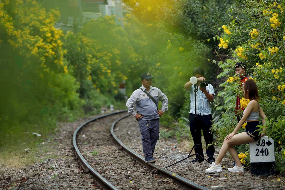 Tuy nhiên, việc chụp ảnh trên đường tàu cũng khá nguy hiểm, vì vậy nhân viên quảng lý đường sắt phải thường xuyên nhắc nhở các bạn trẻ.