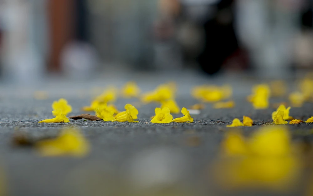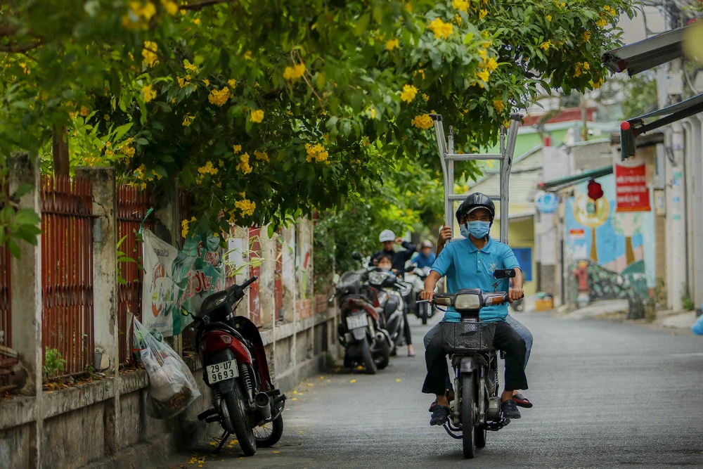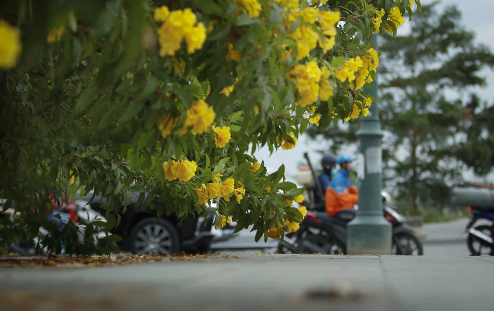 Dọc đường Nguyễn Hữu Cảnh (quận 1), công trình tại đây đã hoàn thiện hơn, đường xá trở nên thông thoáng. Nhờ vậy, hoa huỳnh liên cũng nổi bật hơn.